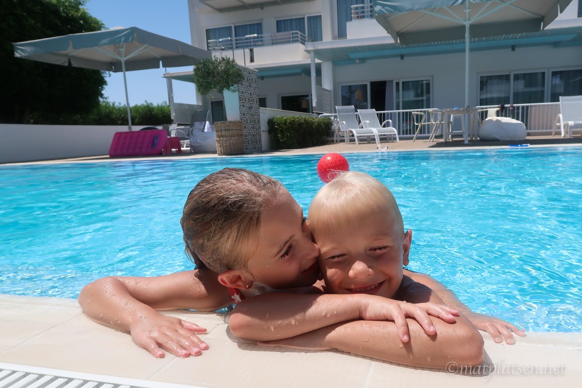 En sån här gråmulen kall vecka där man fryser in i märgen passar ju bra att plocka fram semesterminnena. Vi avslutade vårt långa sommarlov med en vecka till Cypern tillsammans med Åse & fam. (Har varit på samma hotell flera gånger, bilder och tips från tidigare resor hittar ni HÄR). Bokade rum med egen pool och hamnade (önskade) mitt emot varandra, perfekt. Egen pool är verkligen att rekommendera, värt de (ganska många) kronorna extra, särskilt om man reser så här med vänner.