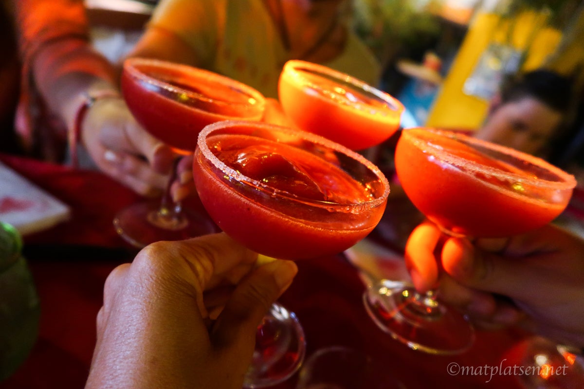 (Jag packade med mig paraplyer och drinkpinnar och sugrör och flamingon så vi kunde pimpa egna drinkar också, lite roligare så :))