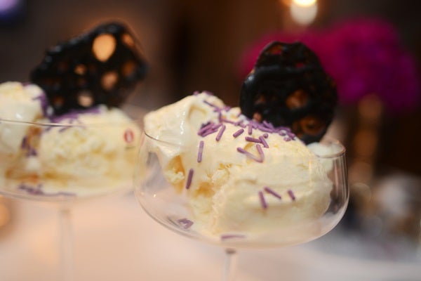 Hade ingen hushållsfärg hemma, men annars är det sött att färga glassen ljuslila