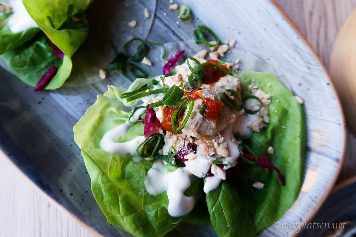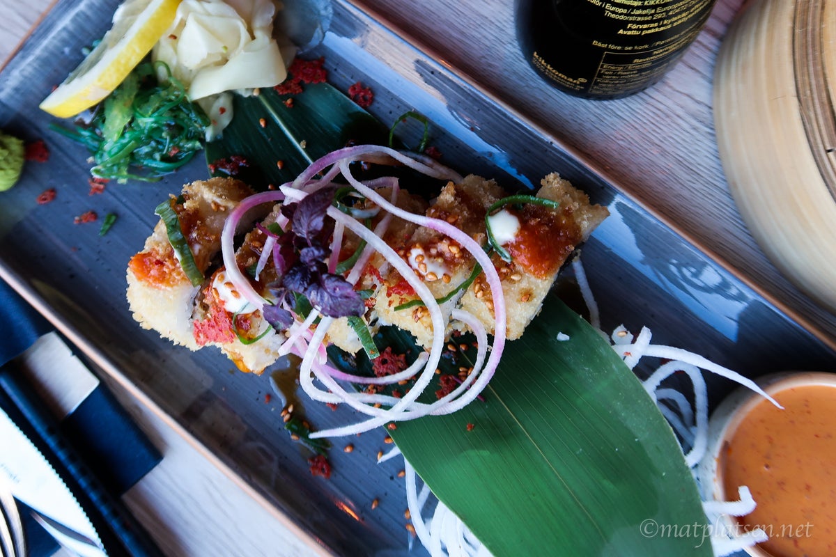 Den friterade kycklingen beställer vi alltid, så god med lime på. Och gösen i nån slags pannkaka/wrap var helt fantastisk. (Men sushin, aaah så god. Ska bli min nya grej. Obs bara denna sushi, rå fisk göre sig icke besvär).