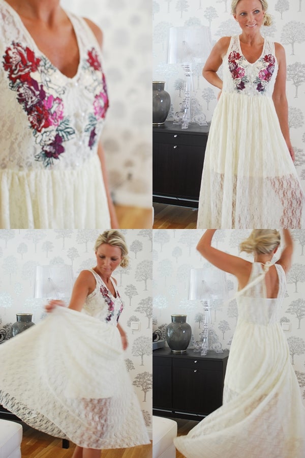 Det blev den midsommarinspirerade långklänningen med spets från NELLY.