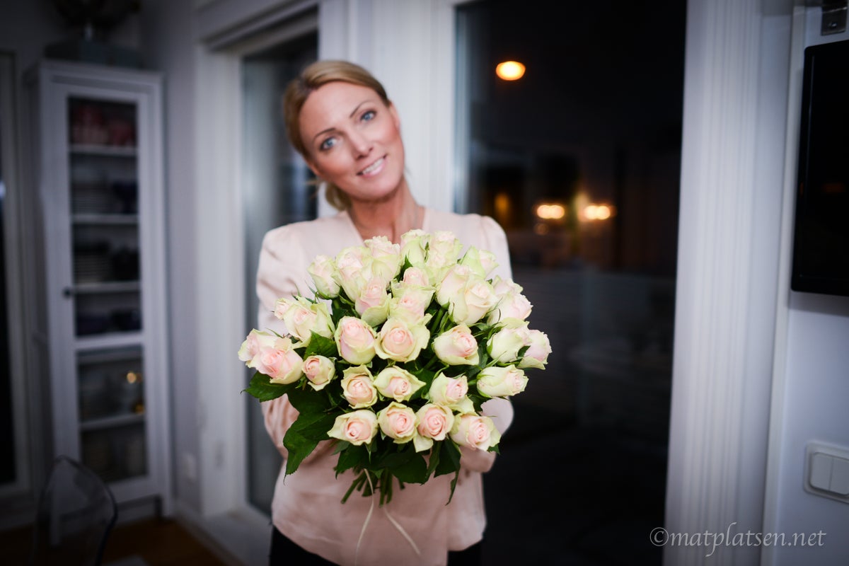 Vi var bortbjudna på middag hos grannarna next door i fredags. Så trevligt! Och gott. Hade med mig en bukett rosor till värdinnan.
