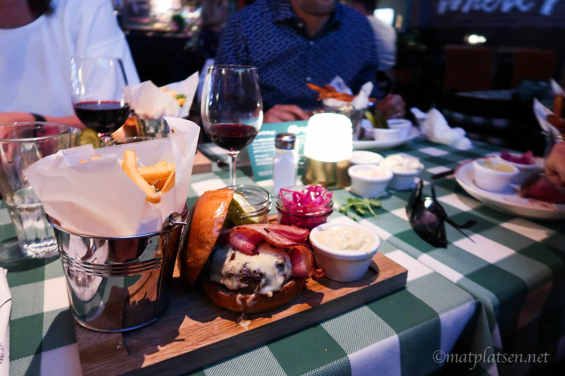 I går var vi ute och åt avslutningsmiddag på O´Learys med fam W. Hade bokat och spanat in menyn sen en månad tillbaka och var sååå laddade för en Bookmaker toast – när vi kom dit visade det sig att de bytt meny dagen innan och den fanns inte längre. Meh!? Blev hamburgare istället, helt ok men tror de hade mycket att göra för det dröjde väldigt länge för både mat och framförallt dryck att komma in. En VM match visades, kanske var därför. (Förvörigt jättepepp på VM men enbart intresserad av Sveriges matcher)