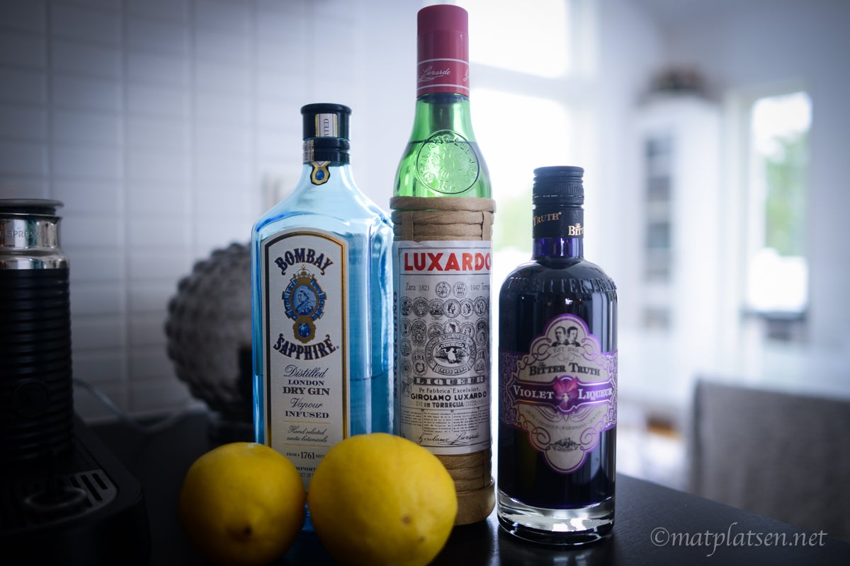 Fredag = drinktips! Har hittat en ny favorit som vi bjöd på förra helgen. Aviation! Är svag för viol i glass, godis etc och drack en gång en supergod drink med smak av viol på Hotel Kung Carl så jag beställde hem en flaska viollikör från systembolaget. Googlade efter recept med viol och hittade Aviation – en drink från 1800 talet (!). Lite olika mått på ingredienserna i olika recept men så här gjorde jag: