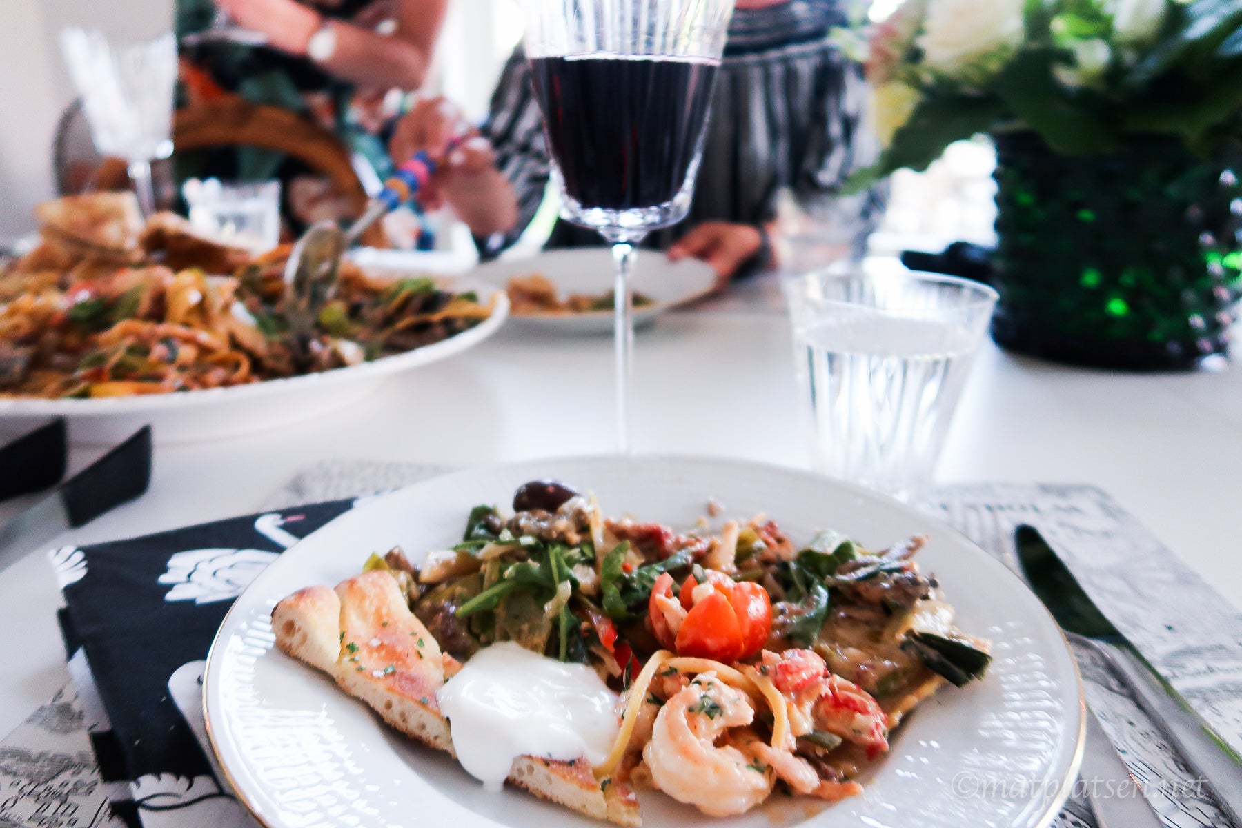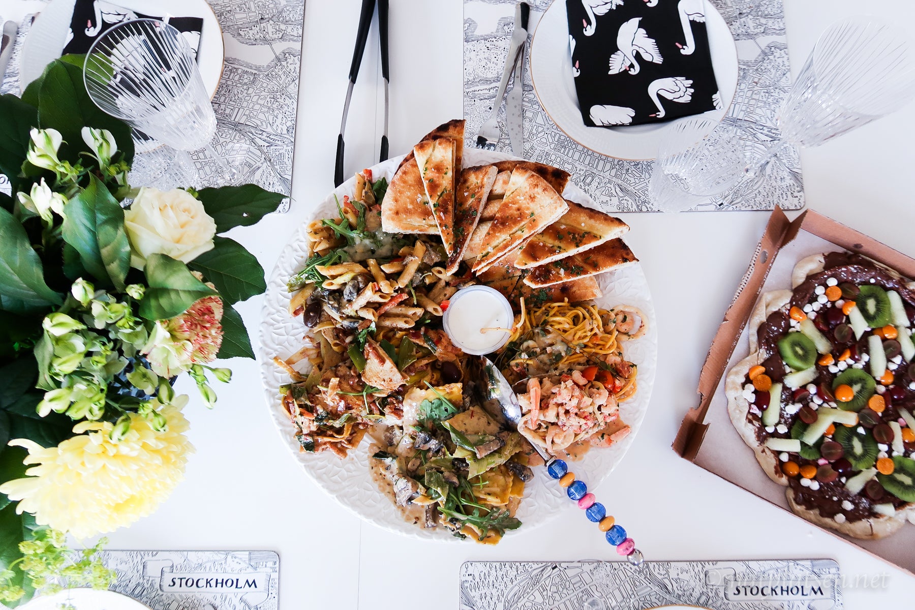 Pasta i stora lass. Som förevigades med alla möjliga mobiler och kameror, de här tre tjejerna bloggar också minsann och erbjöd sig vara vikarier varsin dag när jag är på semester i Barcelona, vad tror ni om det? 🙂