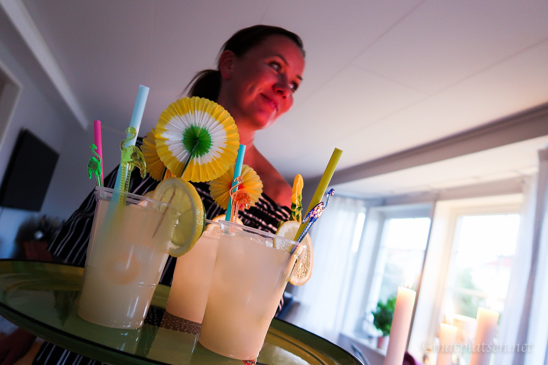 Sen hann vi med en drink till innan kvällen var slut. Stina bjöd på en Pinacolada. Färdig mix (denna ni vet!) och rom, så enkelt men så gott! (och god utan rom också om man vill servera en riktigt somrig alkoholfri drink).
