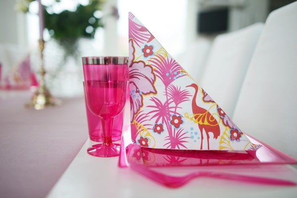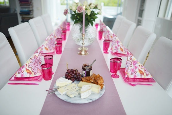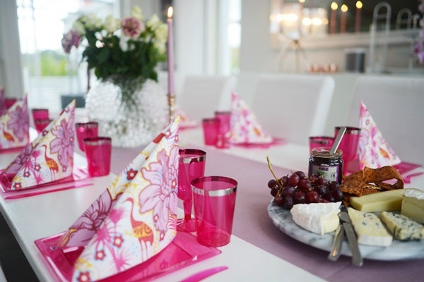 Och servetter som knyter i hop den knallrosa och gammelrosa nyansen, så somrigt glada!