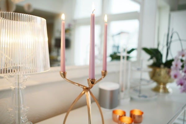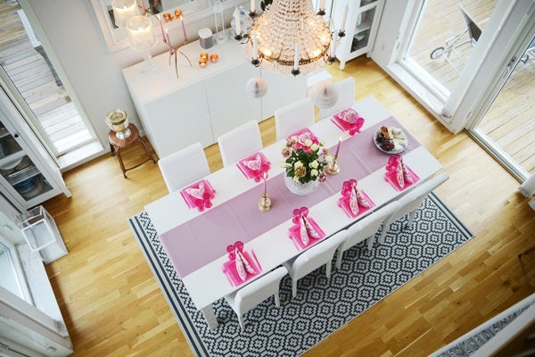 Ljusen går i samma gammelrosa nyans och jag matchade dem med knallrosa tallrikar, bestick och glas.