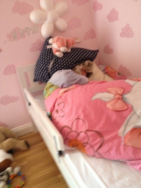 06.00 Inte ens en flaska välling i vår säng hjälpte, glad piggelin gick upp för dagen och försöker väcka syrran. (Som tur var utan resultat, inte vilda hästar verkar kunna väcka henne)