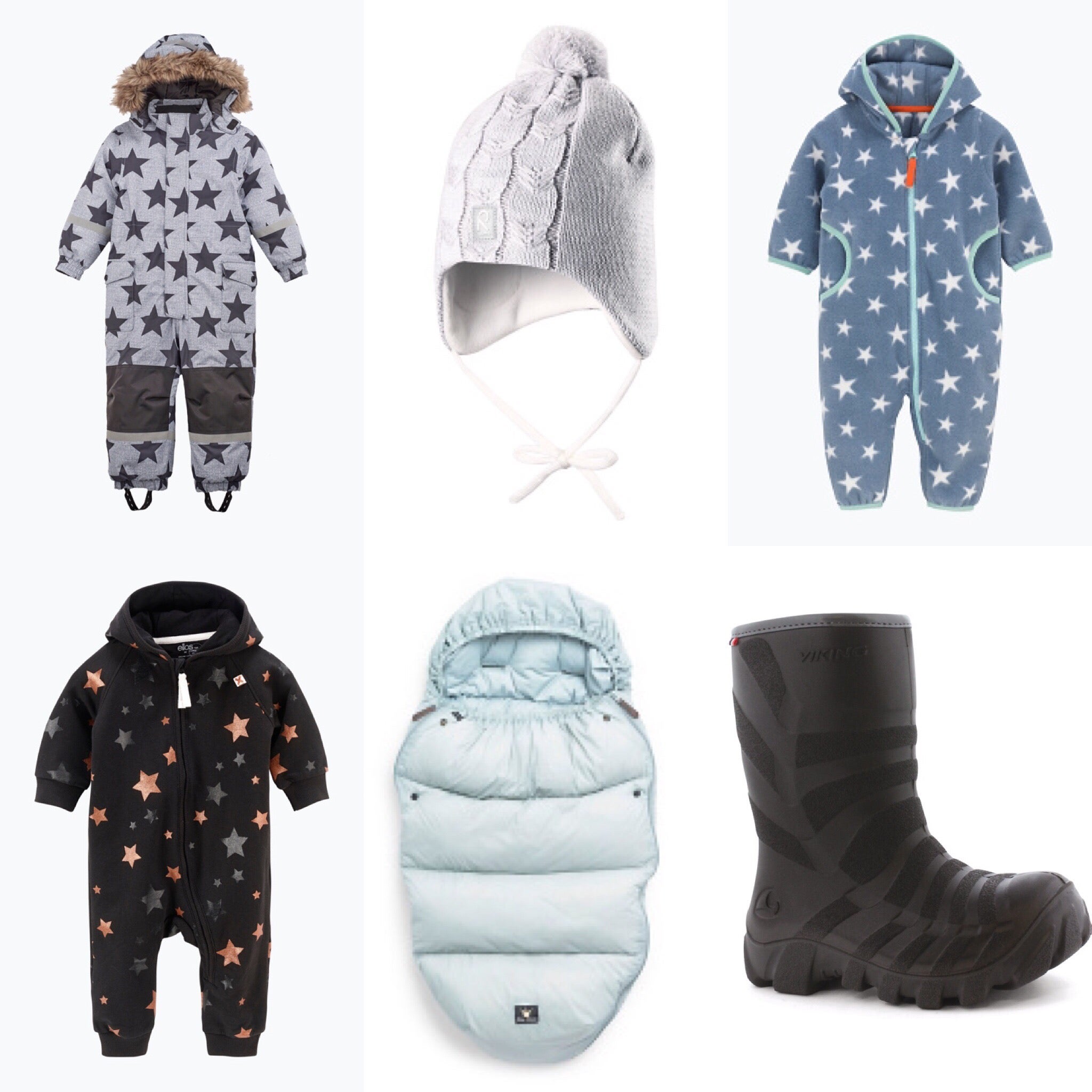 Till Sebbe beställde jag overallen med stjärnor (HÄR) och som varje år blir det varsitt par Viking fodrade allväderstövlar, funkar hela vintern. Bästa bästa. Finns HÄR. Små minipyttebebiskläder (HÄR) brukar jag passa på att köpa till Olivias dockor när det är rabatt.