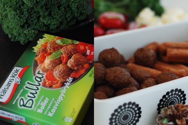Nu har jag testat några vegetariska produkter från Hälsans Kök. Prinskorvar kan enkelt bytas ut mot coctailkorvar och sojakorvar och de obligatoriska köttbullarna ersättas av bullar.