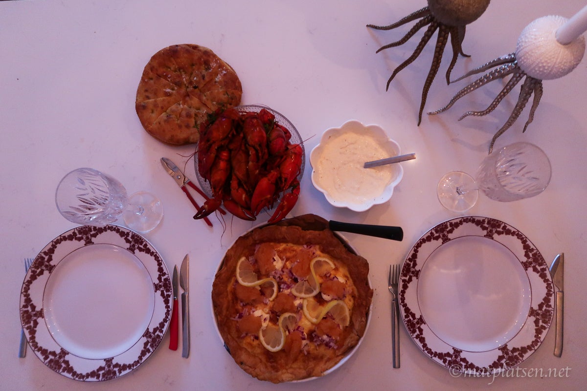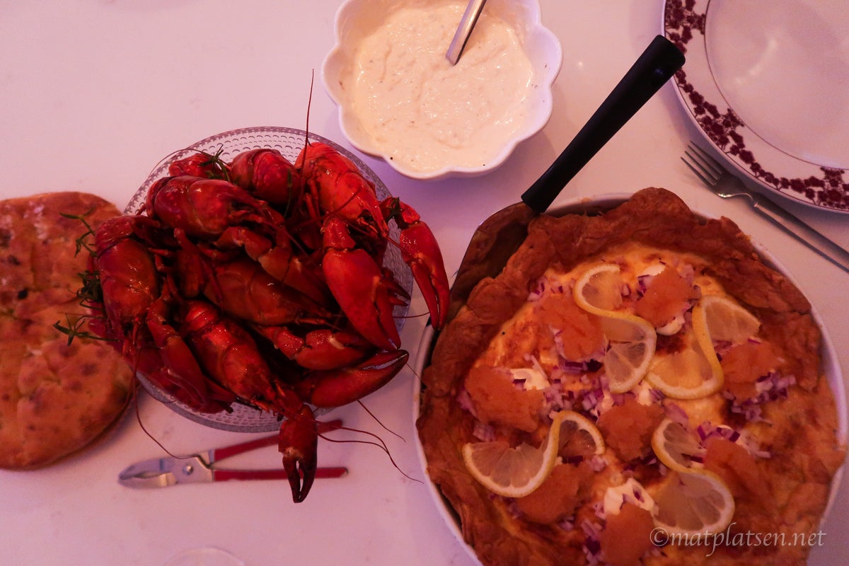 Det blev en lugn hemmakväll, Micke och jag åt kräftor framför en film. Kräftorna var svingoda men filmen u s e l. Åt en västerbottenspaj till och focaccia med kryddoströra.