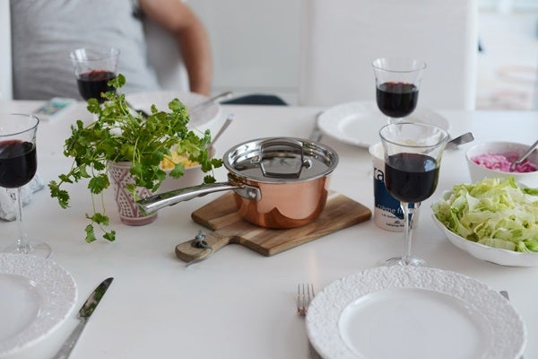 Servera Chilin med tortillabröd, den picklade löken, creme friache, koriander, riven ost och sallad. Såååå gott!