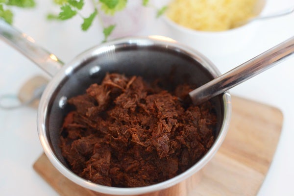 Lägg ner brynt högrev, krossade tomater, limejuice och vatten. Täck med lock och låt din chili sjuda på låg värme i cirka 2-4 timmar (beror på köttet, känn så det är riktigt mört!). Tillsätt bacon de sista 5 minuterna. Smaka av med salt och peppar. Servera på en gång eller låt den stå i kylskåpet i 2 – 3 dagar. Chilin blir bara godare av det.