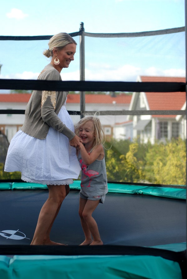 Studsmattan kommer dom använda hur mycket som helst, vi är inne på vår andra, den första flög iväg när det blåste här för ett par år sen, så glöm inte att sätta fast den på nått sätt, för dom lyfter rätt lätt. Min lillkille krockade med kompisen när dom studsade i fredags kväll, så han har en stor blåtira och är jätte svullen, men det är sånt som händer.