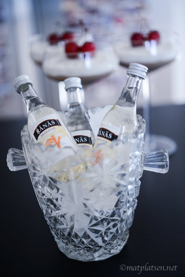 Den passar inte bara bra till midsommarbuffén utan går särskilt bra i hop med chokladdesserter så vi passade på att provsmaka den till en krämig chokladmousse i 2 lager. Snapsen är riktigt bra, jag som annars inte är sååå jätteförtjust i just snaps gillar verkligen apelsinsmaken!