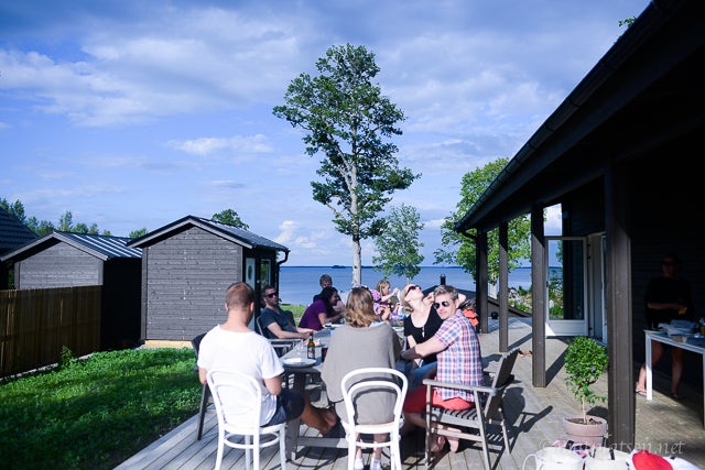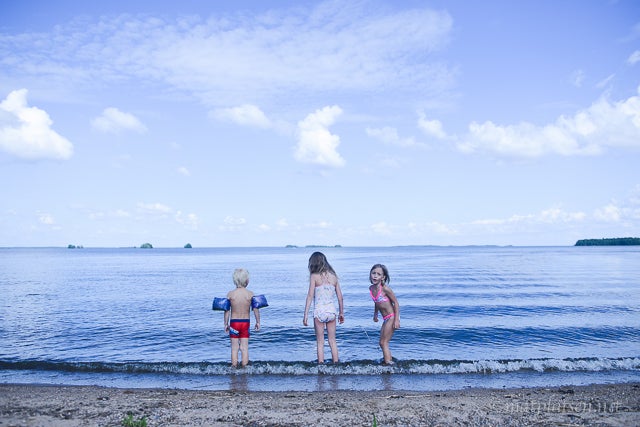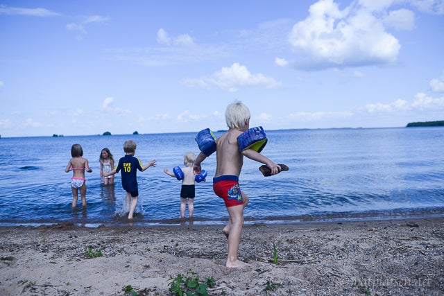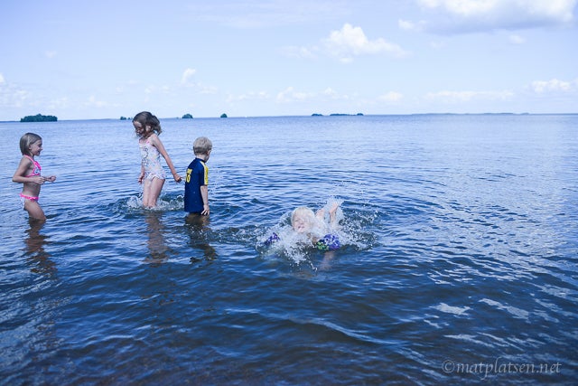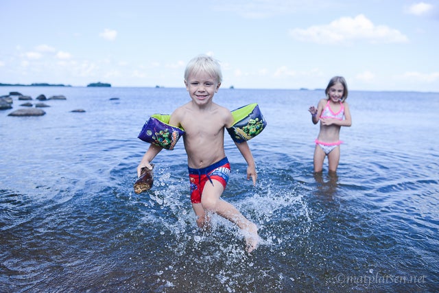 Åkte ut tillsammans med ett gäng grannar till ena familjens nybyggda sommarhus ute i Katrinelund. Vilken idyll! Barnen badade (brrr, men Sebbe är inte direkt blyg för att göra bomben var som helst – spelar nog ingen roll om det är en isvak ;)) och sen blev det grillat och dessert innan det kom några regndroppar. Vi är ju trots allt i Sverige 😉