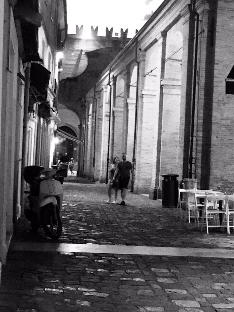 I den här gränden inne i Rimini stad brukar vi sitta och beställa in en flaska Lambrusco. Till det apertivo (plockmat) och bara sitta där och njuta av de ljumna kvällarna.