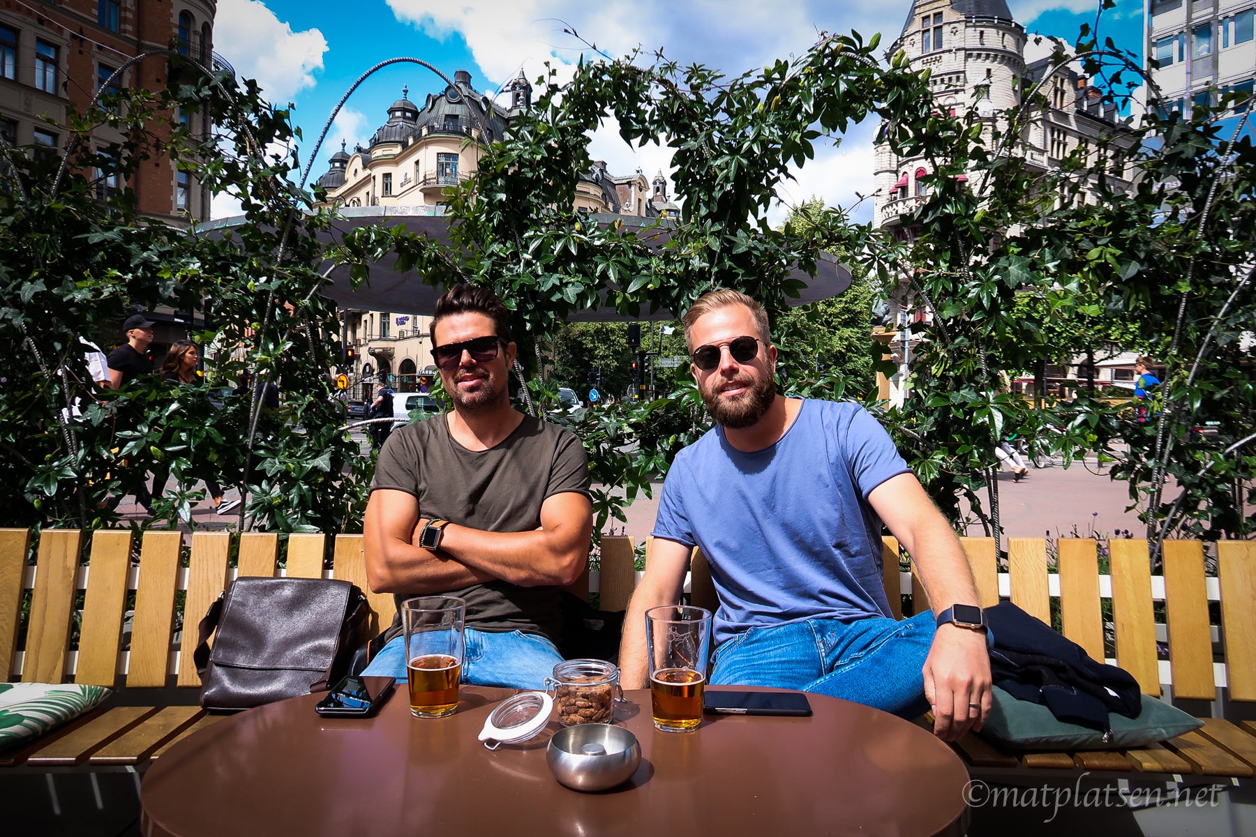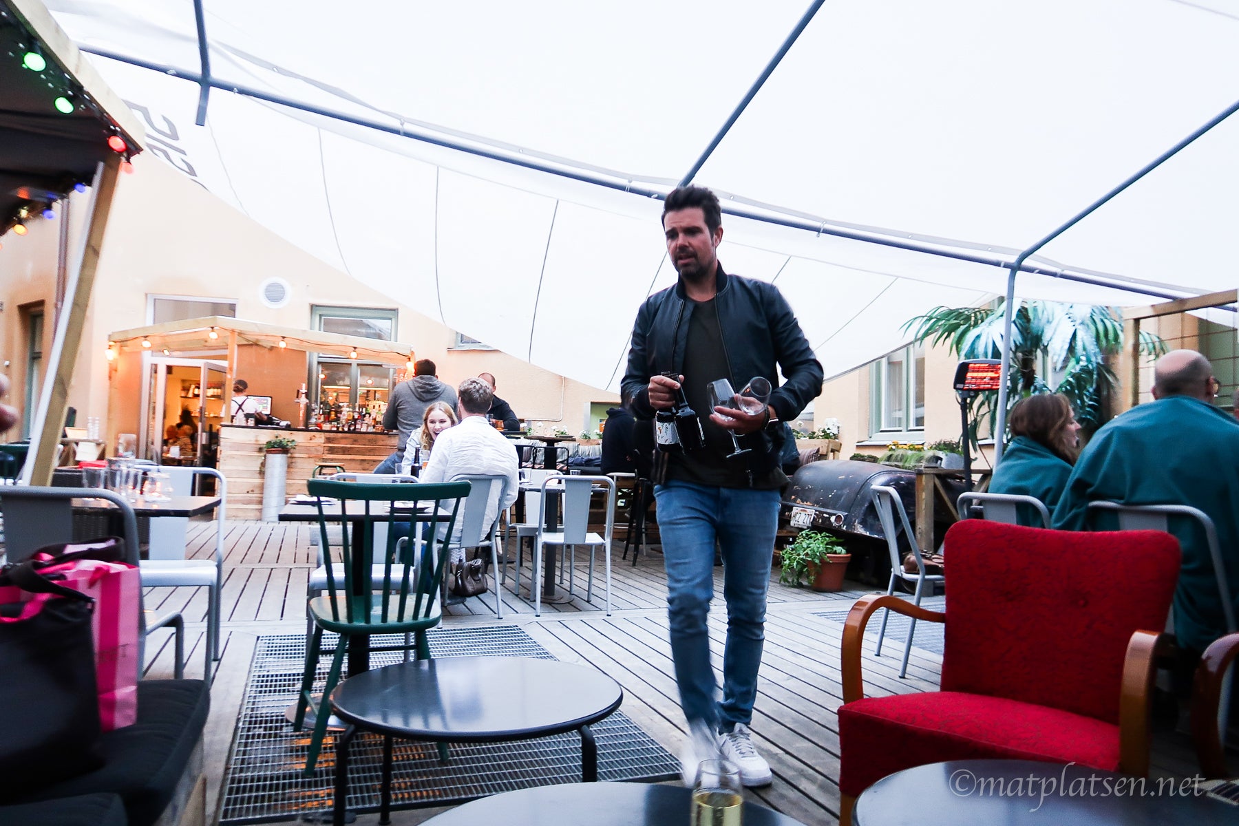 Hade bokat middagsrestaurang på Odenplan så vi tog en promenad dit på kvällen. När vi strosade bland smågatorna på vägen dit såg vi en skylt med ”prosecco 59 kr glaset på innergården” vid ett litet hak man lätt gått förbi utan att se men tänkte att vi kikar in. Och där fanns den mysigaste lilla innergård gömd (med billigt bubbel!). Älskar såna här små ställen.