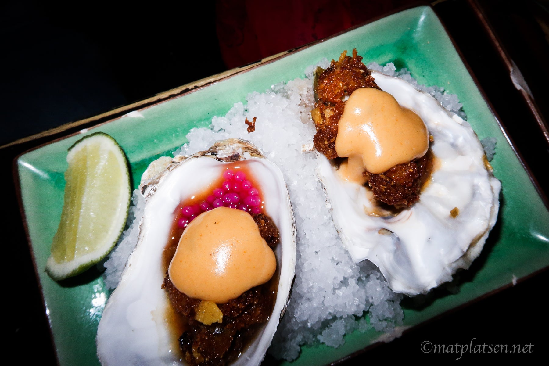 Tessan och Matte började med varsitt friterat ostron som tydligen var galet gott! Vad Micke och jag tycker om ostron kan man nästan se på Mickes min..