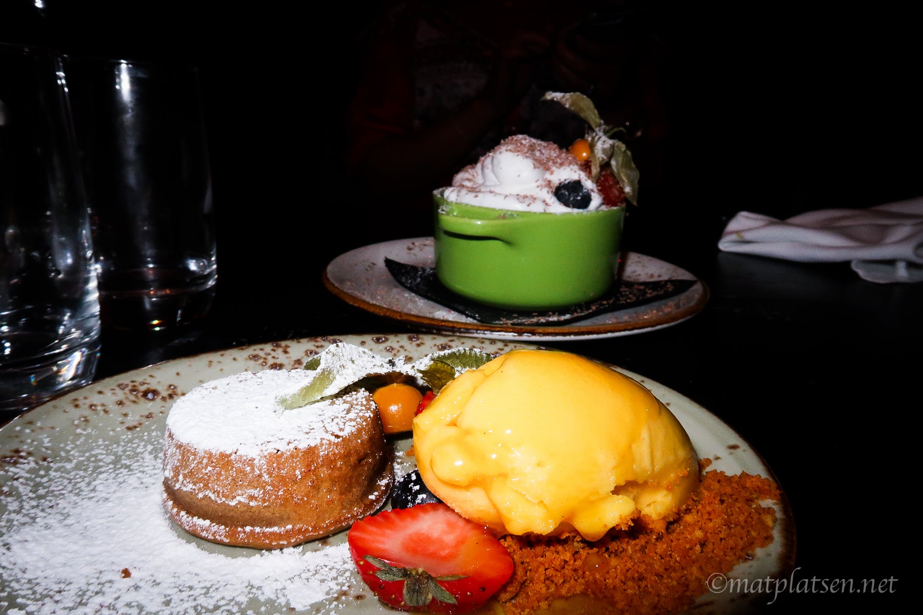 Urmysigt! Men sen pinnade vi vidare mot Yuc. En mexikansk restaurang vi bokat middag på. Och vilken god middag sen! Vilken härlig stämning i restaurangen, hög glad volym på både gäster och musik, skön inredning och avslappnad stil. Vi kunde knappt välja på menyn, allt lät gott. Fick hjälp av servitrisen att korta ner vår lista till en mer rimlig måltid för 4 haha. Blev ändå ganska mycket men vi kunde inte välja bort nåt mer, tjaaa om ni tar det lugnt och pausar lite och så där så trooor jag att ni kan få i er det sa hon och tittade lite skeptiskt på oss. Det var inga problem. Fick även plats med två efterrätter men de kunde vi hoppat, det var maten som var det goda.