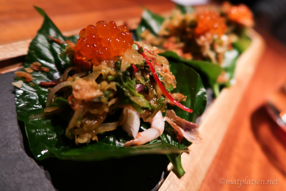 Vi hade bokat bord för middag på Farang efter otaliga lovord och tips från både läsare och vänner. Förväntningarna var skyhöga. Ligger på Tulegatan 7 (våra gamla hoods, bodde på Tulegatan 31) så det var nära promenadavstånd från hotellet. Ser inte så märkvärdigt ut utanpå men stort inomhus! Fullproppat med folk och ljudnivå därefter (inget negativt dock, gillar det) och kändes lite som en lillasyster till Buddakan i New York. Maten och sättet att äta påminner också.