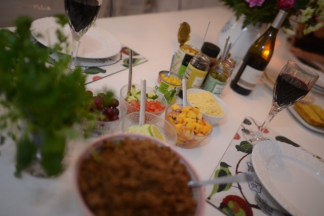Gårdagens middag var tacos deluxe, mums så gott!! Massa goda tillbehör som mangosalsa (som blev HET!), koriander och chilimajonnäs (den måste ni testa, Santa Marias – suuuupergod!).