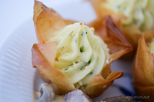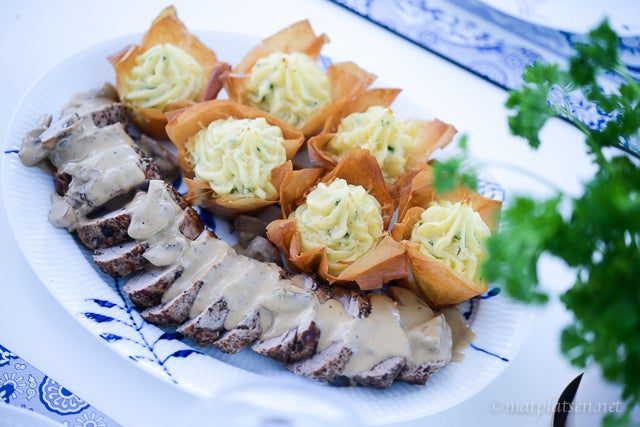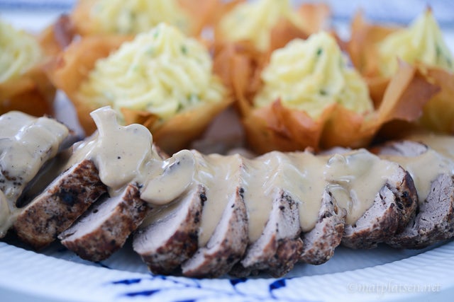 Knaprigt och frasigt med filodegen runt det lena potatismoset, mums! Och väldigt god smak på såsen till köttet. Testa detta!