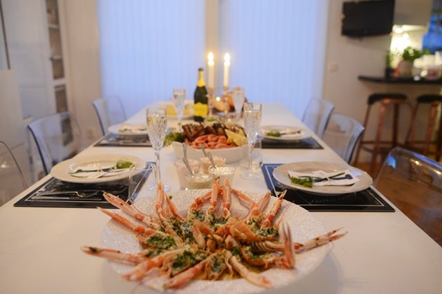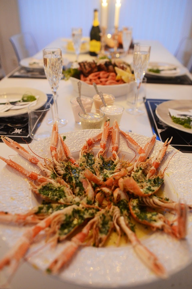 Skaldjur är ju som bäst just nu så vi vuxna kalasade på det, där var kräftor och räkor och krabba och gratinerade havskräftor. Med såser och dipper och bröd och bubbel till. Gaaah så gott!!