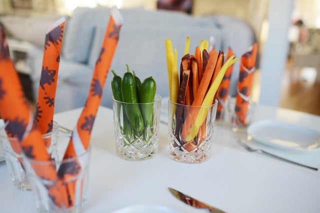 Barnen åt miniguror, färgglada morötter och färskpressad päronjuice som mingelmat. Sebbe är gaaaalen i dessa gurkor och åt väl sisådär 20 st