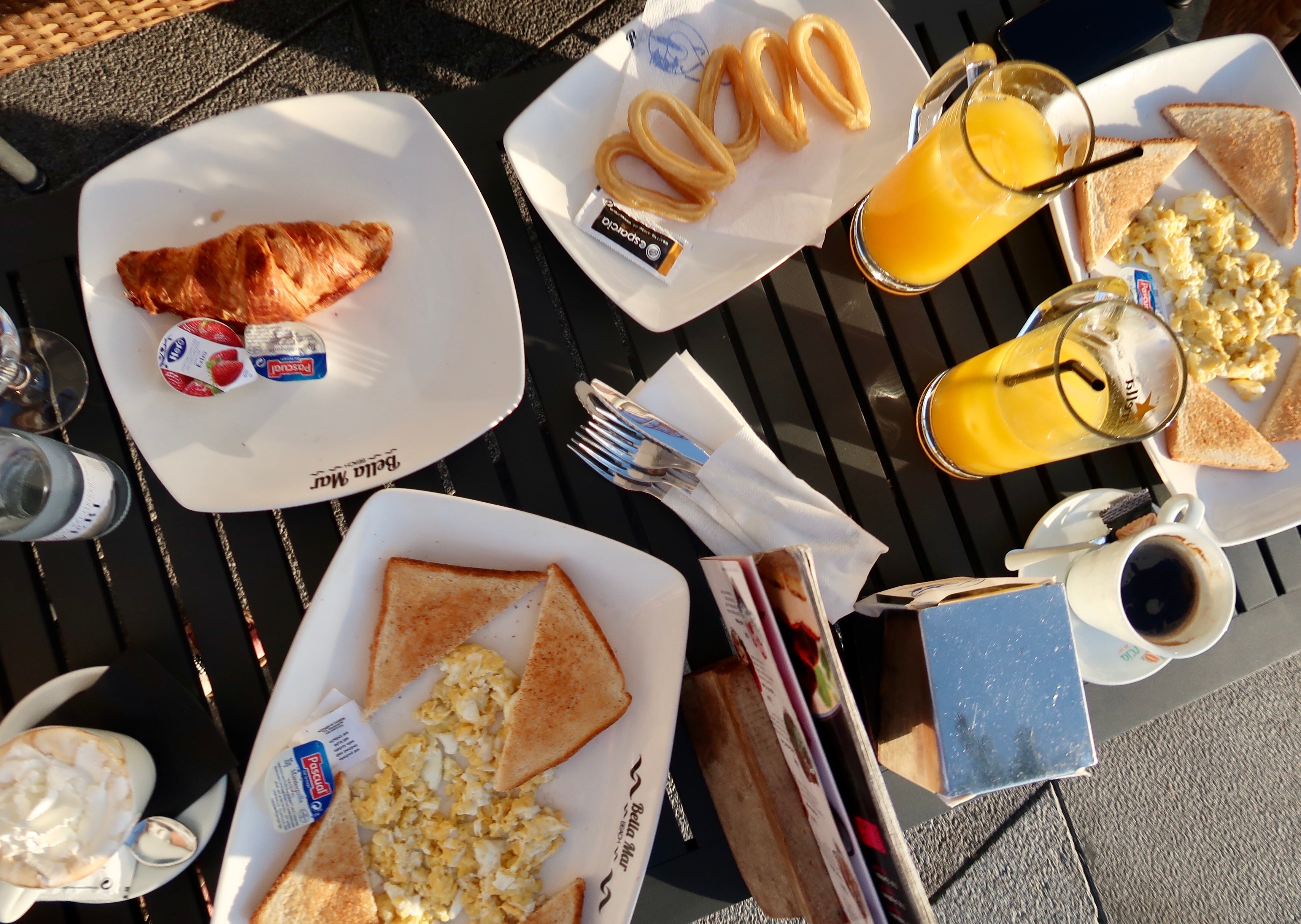 Churros, croissanter och äggröra med toasts och nypressad juice. Inget märkvärdigt egentligen men ändå livets frukost. Lyckorus i hela kroppen!