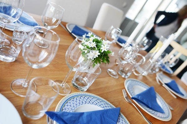 Blå dukning och vitsippor, så vårigt!