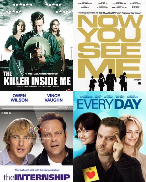 Now you see me är jättebra. The internship såg jag igår. Den var …lååååång och tråkig. The killer inside me är rikigt obehaglig och everyday är ok.
