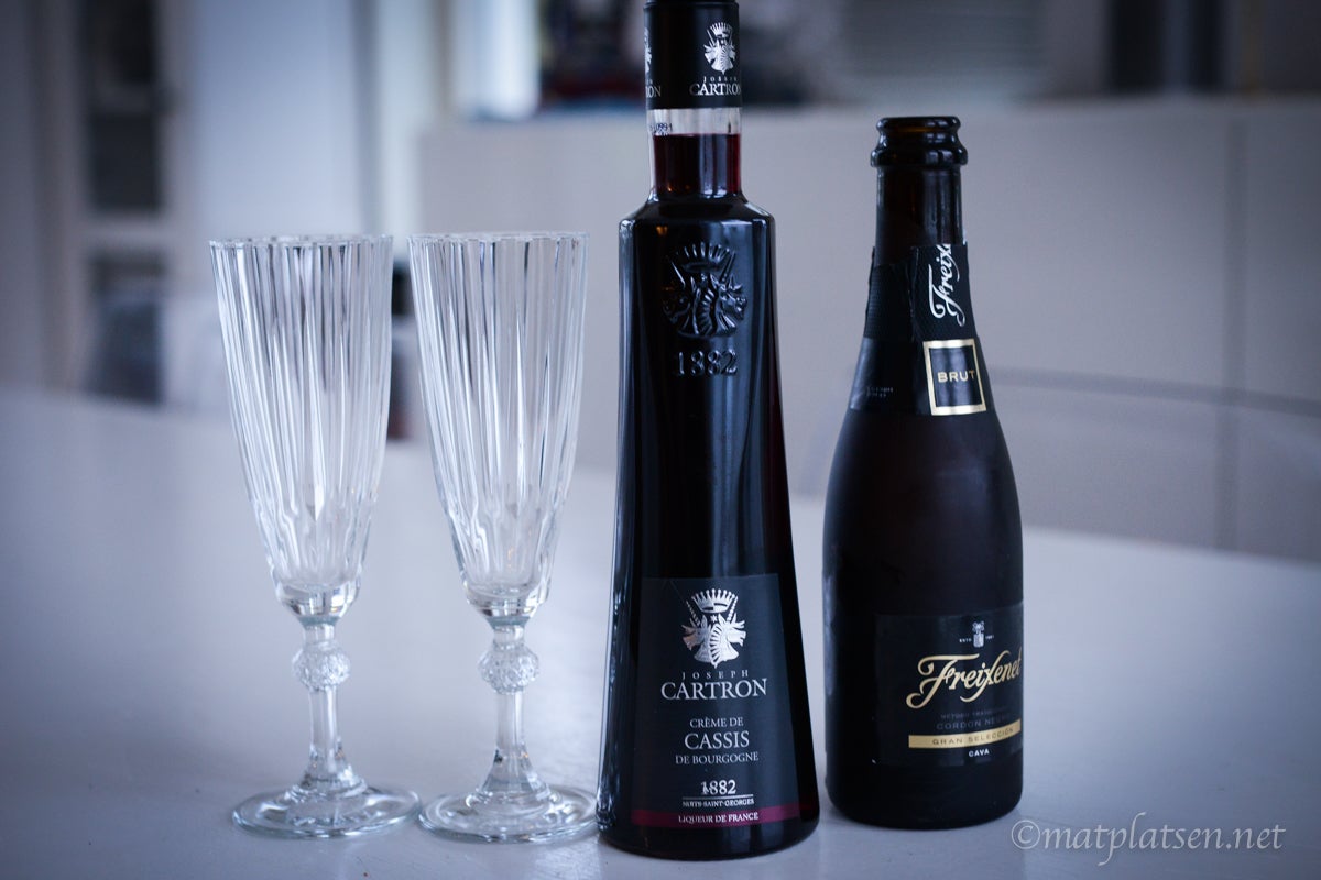 Fredagsdrinken i dag blir en klassisk Kir Royal. Gillar drinkar med mousserande vin, fräscht.