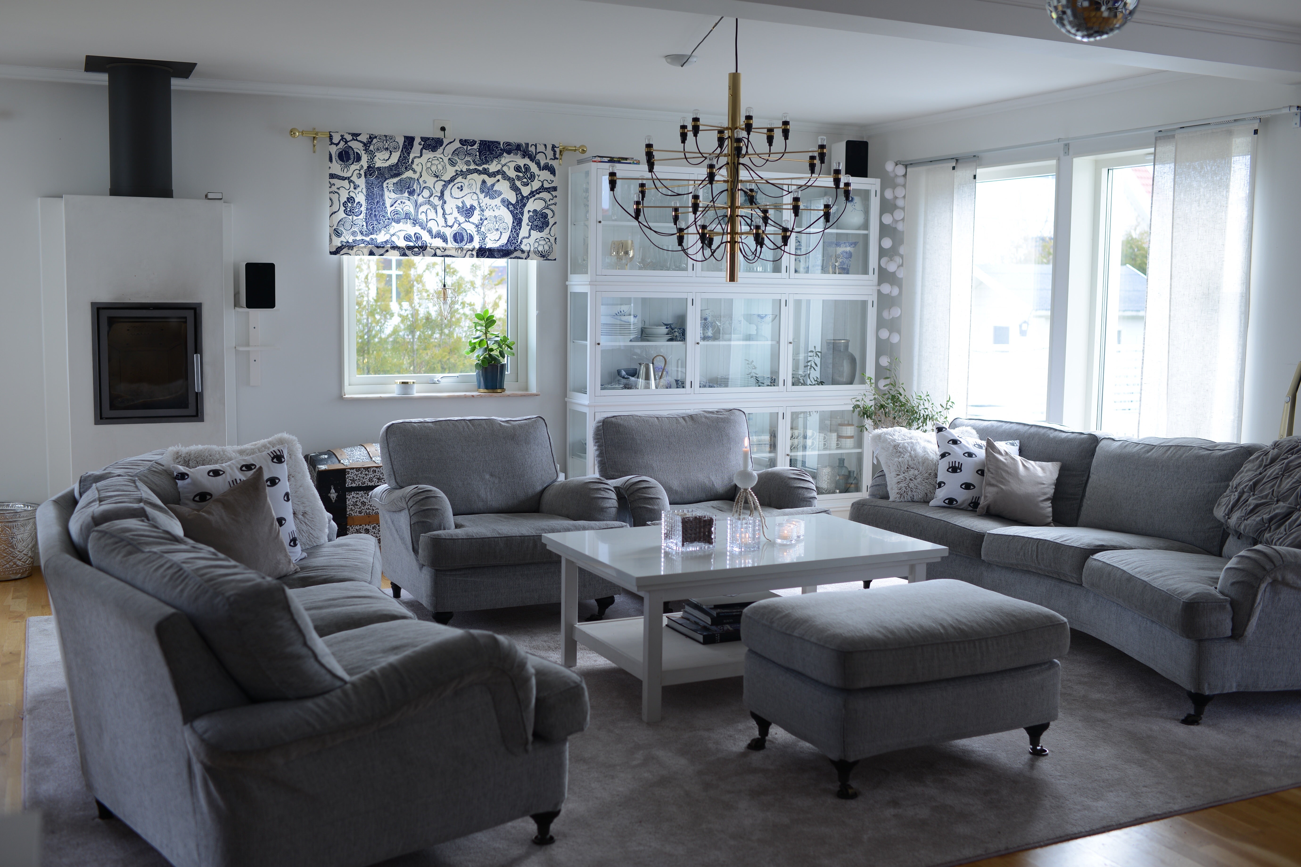 Du har så otroligt fint hemma, precis i min stil! Är ute efter en matta, liknande din. Har för mig att jag läst att den är måttbeställd. Får man fråga varifrån o minns du vad färgen heter? För visst är den grå?