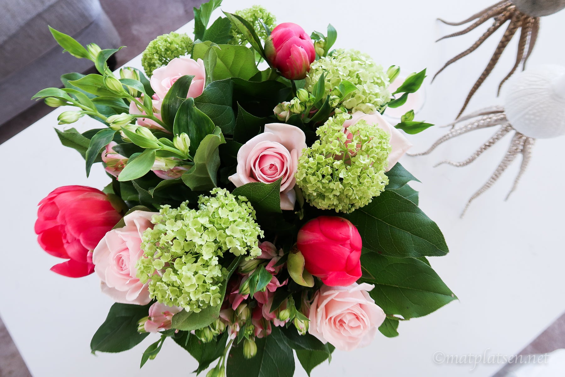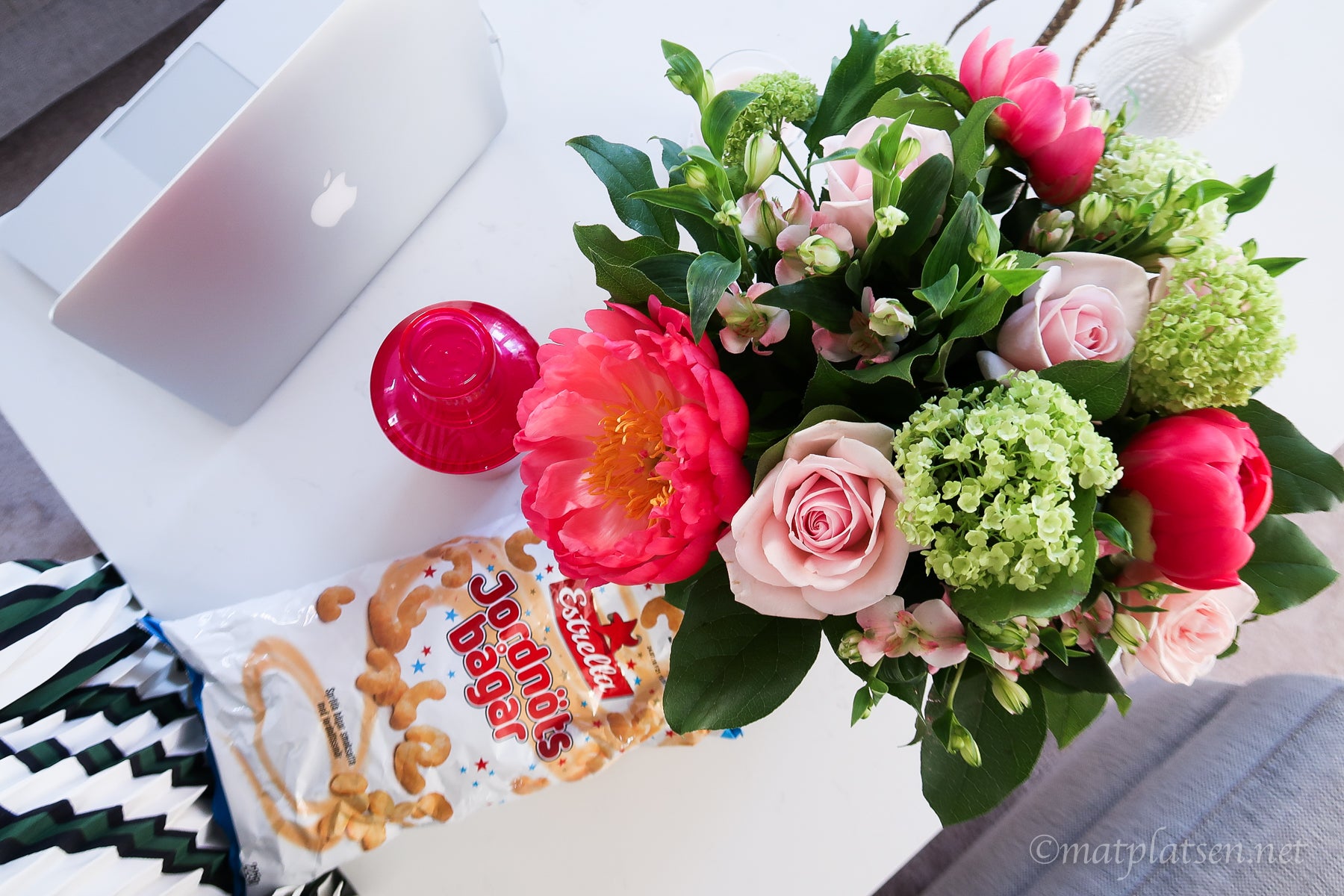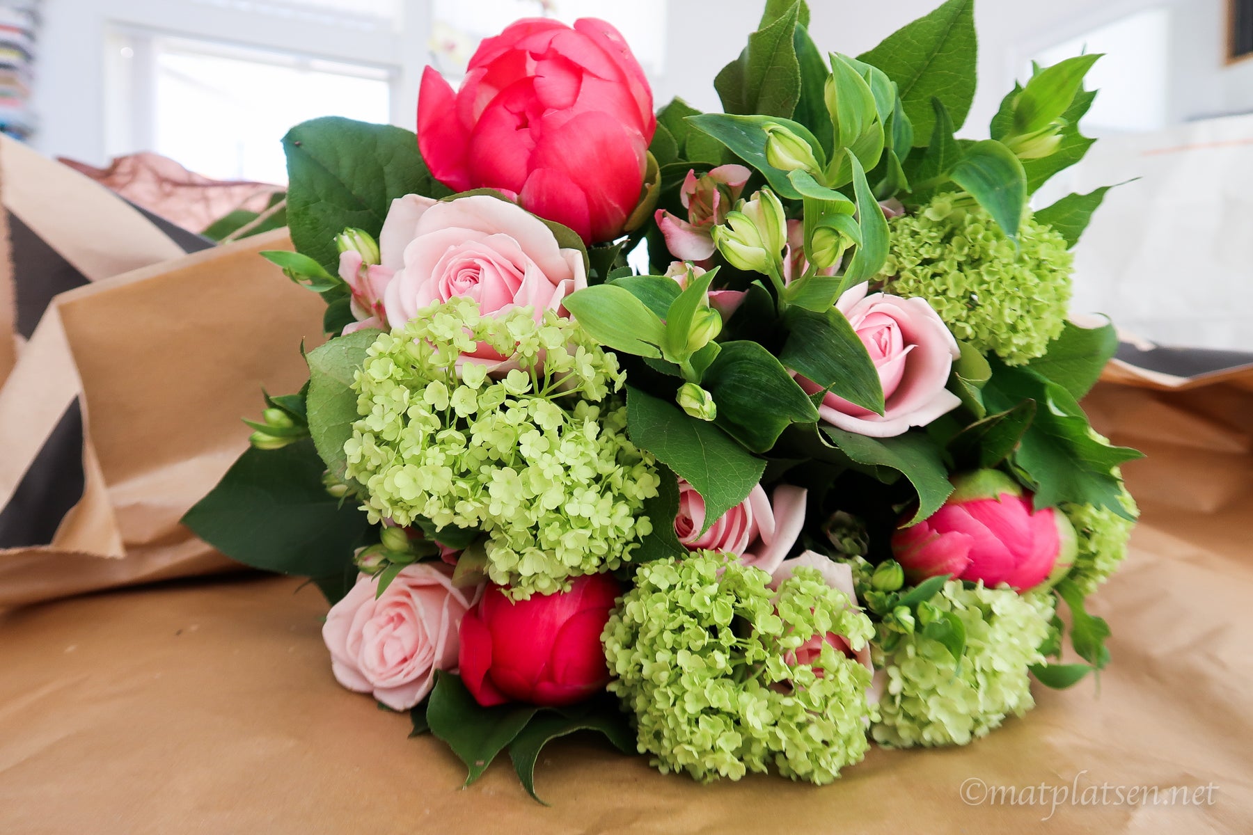Interflora (är det va?) i Tybble är BÄST, drömmiga buketter och blommor som håller länge. Kolla på pionerna liksom?! Medan jag gjorde mig i ordning hann en slå ut och den var lika magisk som utlovad. (Brukar peka på ungefär vad jag tänkt mig och sen binder de i hop något vackert av det och lite till, så duktiga!)