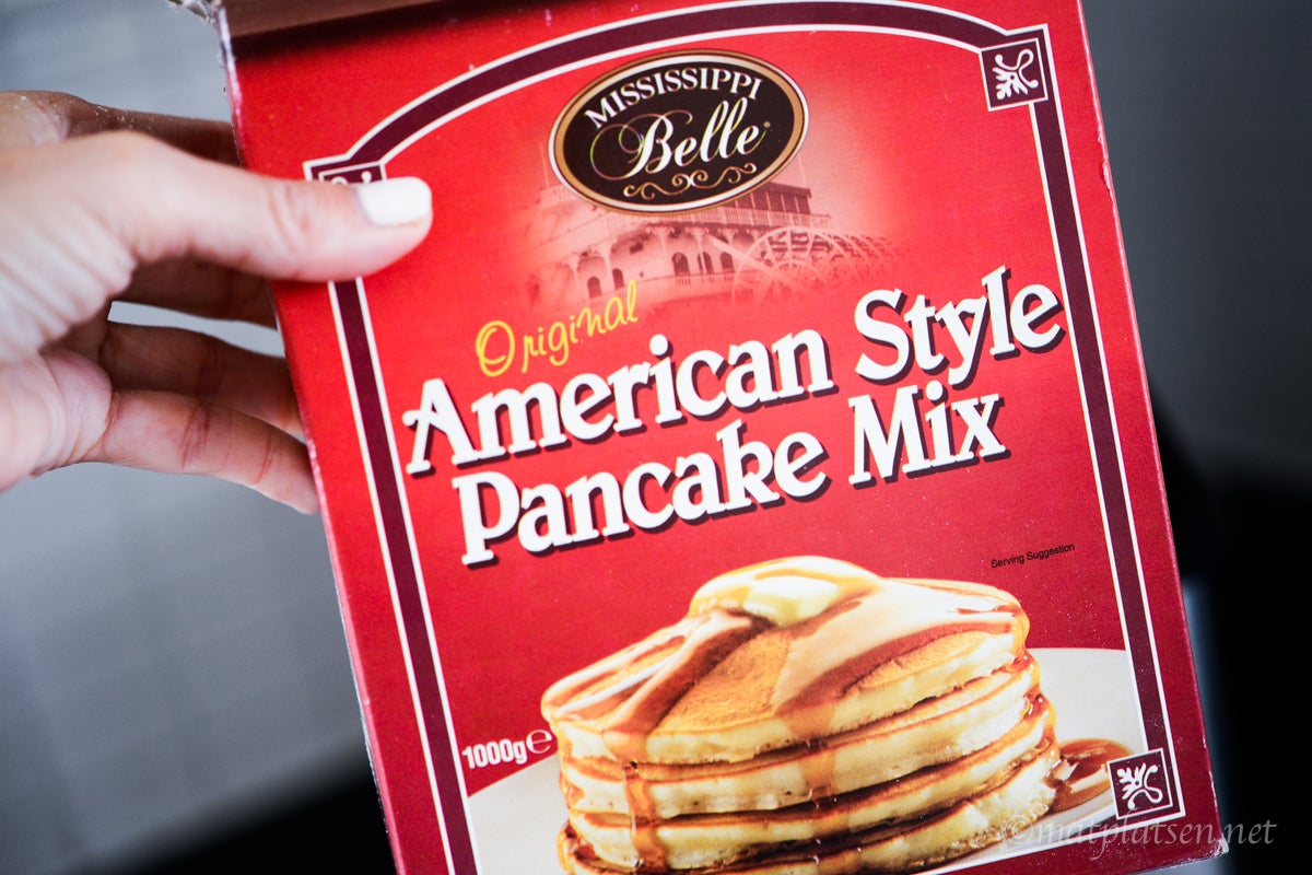 Vilken pannkaksmix som helst för amerikanska pannkakor. Kram