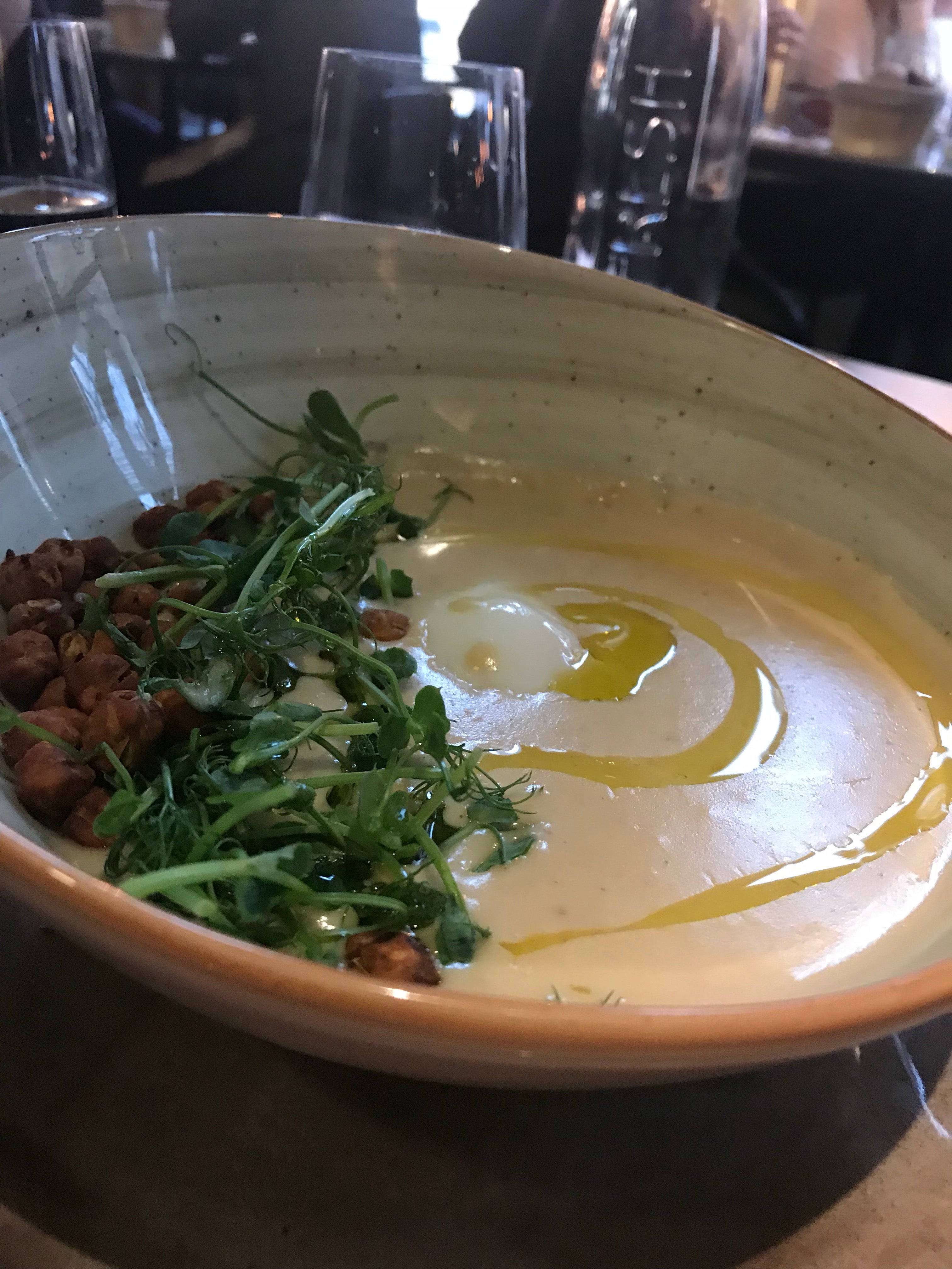 Var på ett trevligt lunchmöte i går, ser fram emot 2018 på många sätt. Valde blomkålssoppa med pocherat ägg och rostade kikärtor.