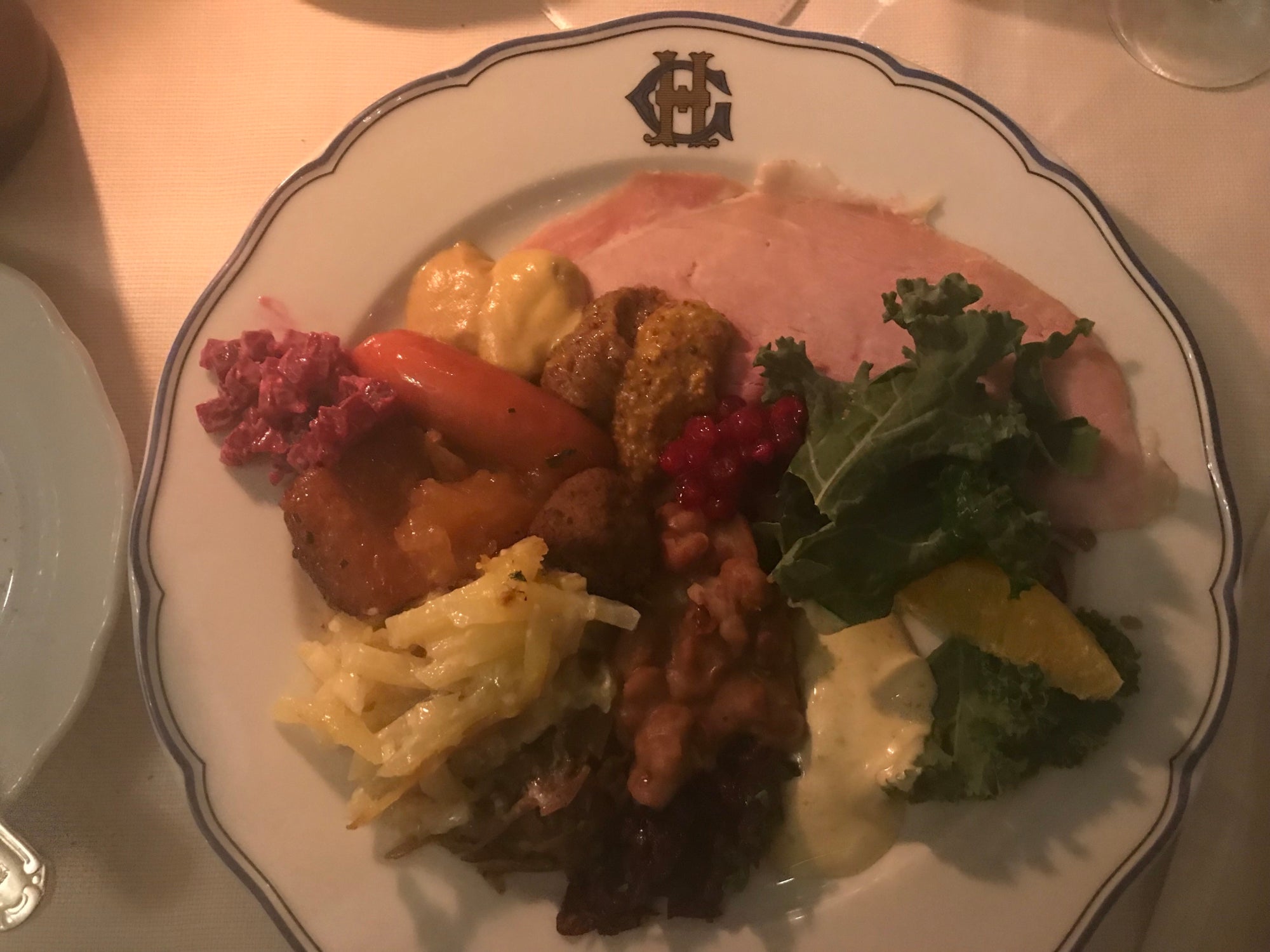Svidande om lite snabbt och kilade i väg till Grand Hotel för julbord på Verandan. Hade en såå mysig kväll med god mat (klassiskt julbord med allt man vill ha, fräscht och fint. Inte så mkt ”nyheter” men ett mycket gott dessertbord. Godast var ribsen, julskinkan och den inkokta laxen.) Lugnt och vackert och stämningsfullt. Ingen hets och köer.