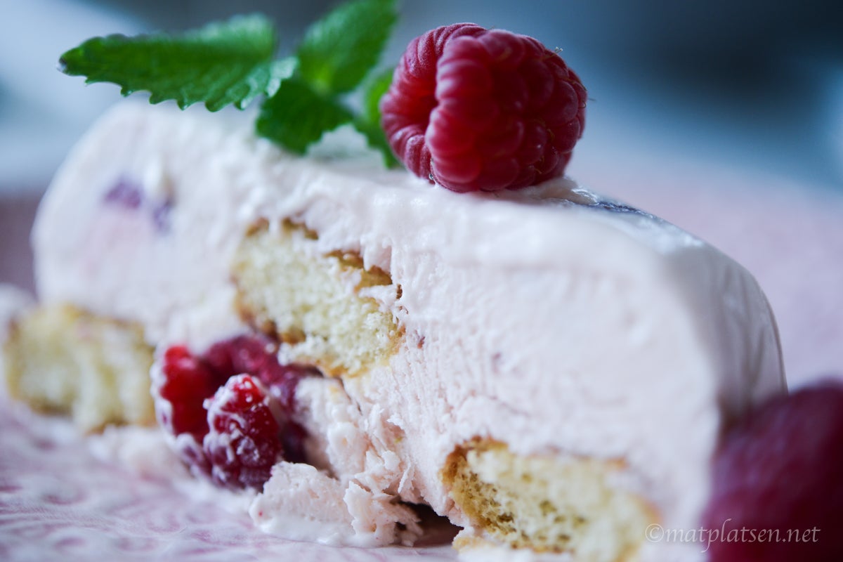 Tänkte tipsa om en sommarfräsch glasstårta, kanske inte läge att äta den i dag då 🙂 Jag gjorde en halv sats när jag provlagade (för nån hade snott med sig min ena burk kesella som frukost) så min är lite mindre än den blir om man följer receptet (från arla).