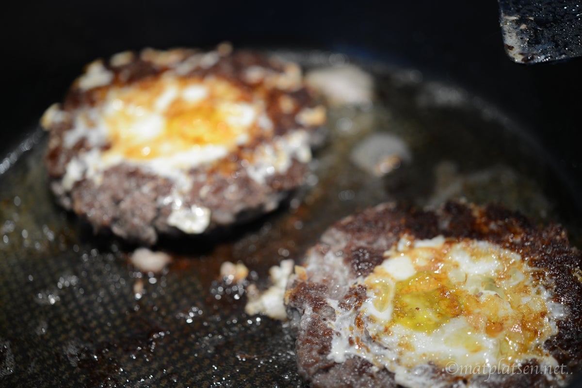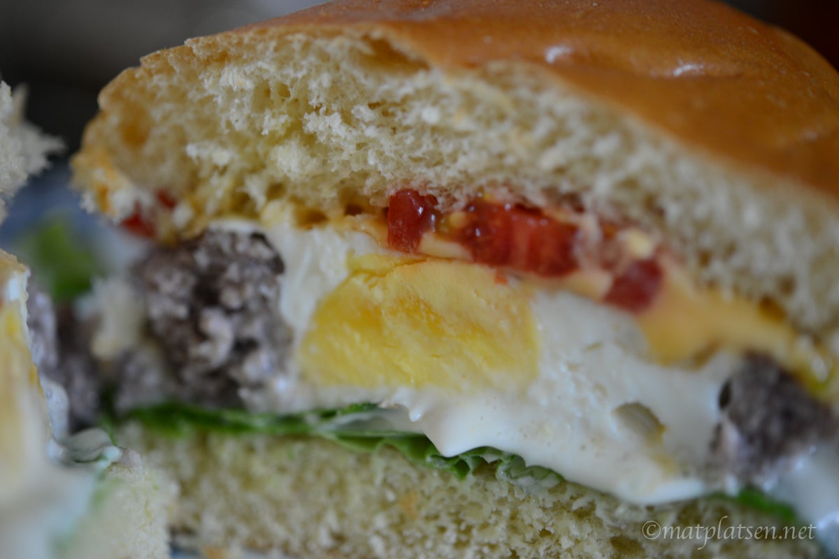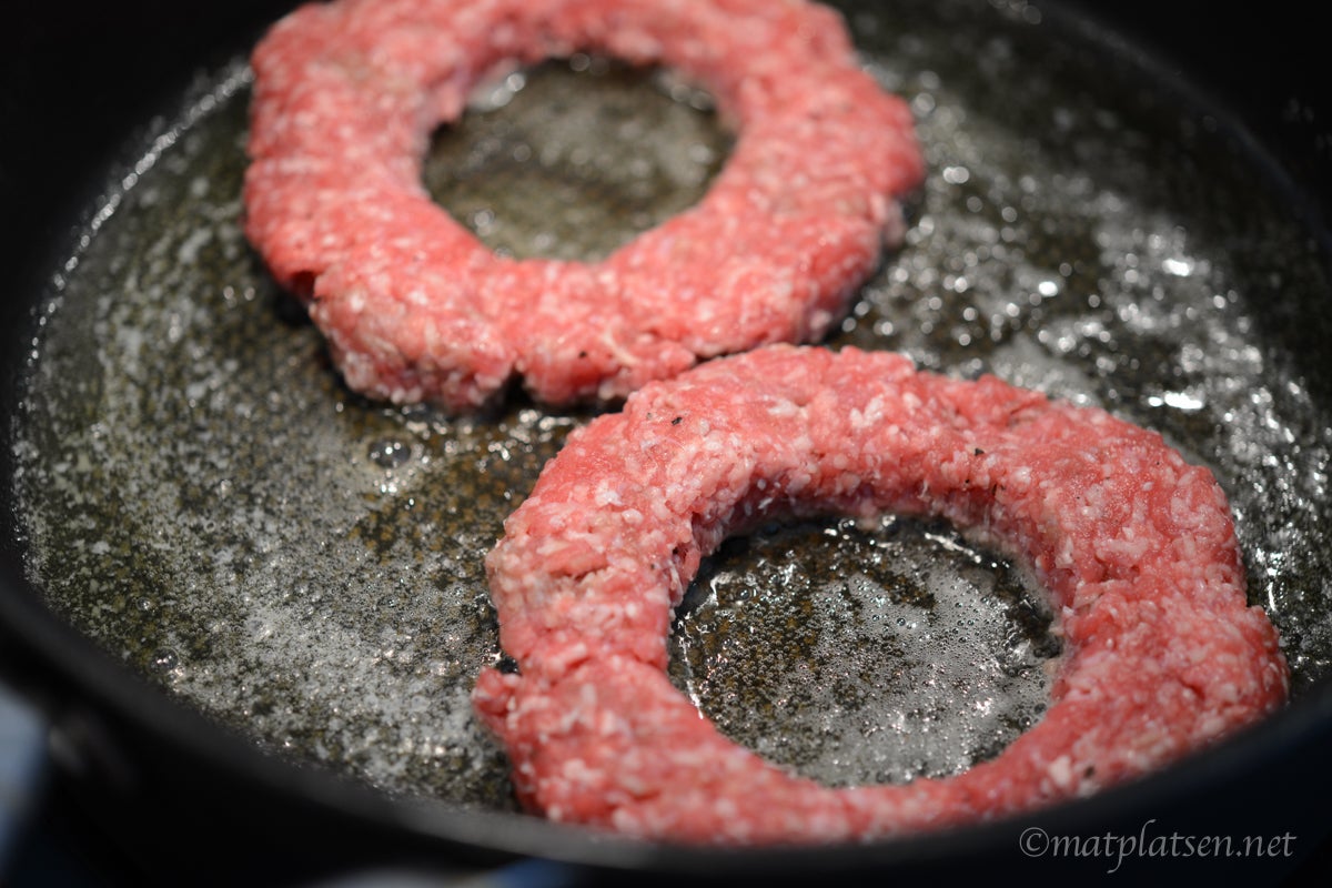 En god variant på hamburgare fyllda med ägg! Saftigt och gott, jag älskar ägg i burgare och beställer ofta till ett stekt ägg om det går.