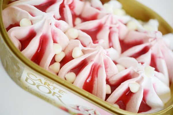 Vi har testat en nyhet från Carte d’Or, Strawberry & Meringues. En vanilj- och jordgubbsglass blandad med jordgubbssås, toppat med mini maränger doppade i vit choklad. Yummi!! God som den är rakt upp och ner men kul att göra någon enkel dessert av.