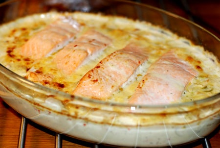 Gorgonzolafylld lax i vitvinssås (recept HÄR)