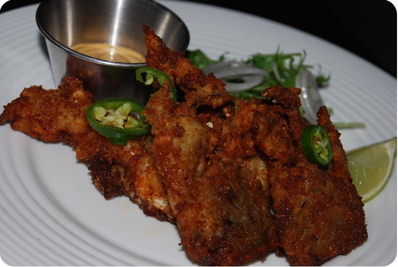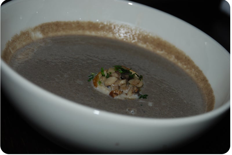 Då var de andras förrätter godare, Field mushroom soup och Crispy soft shell crab with spicy mayonnaise.