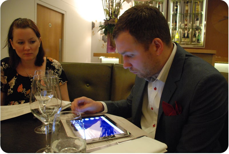När vi satt oss vid bordet fick vi in vinlistan – på en egen iPad! Där klickade man i vad man ville dricka. Very hightech 😉
