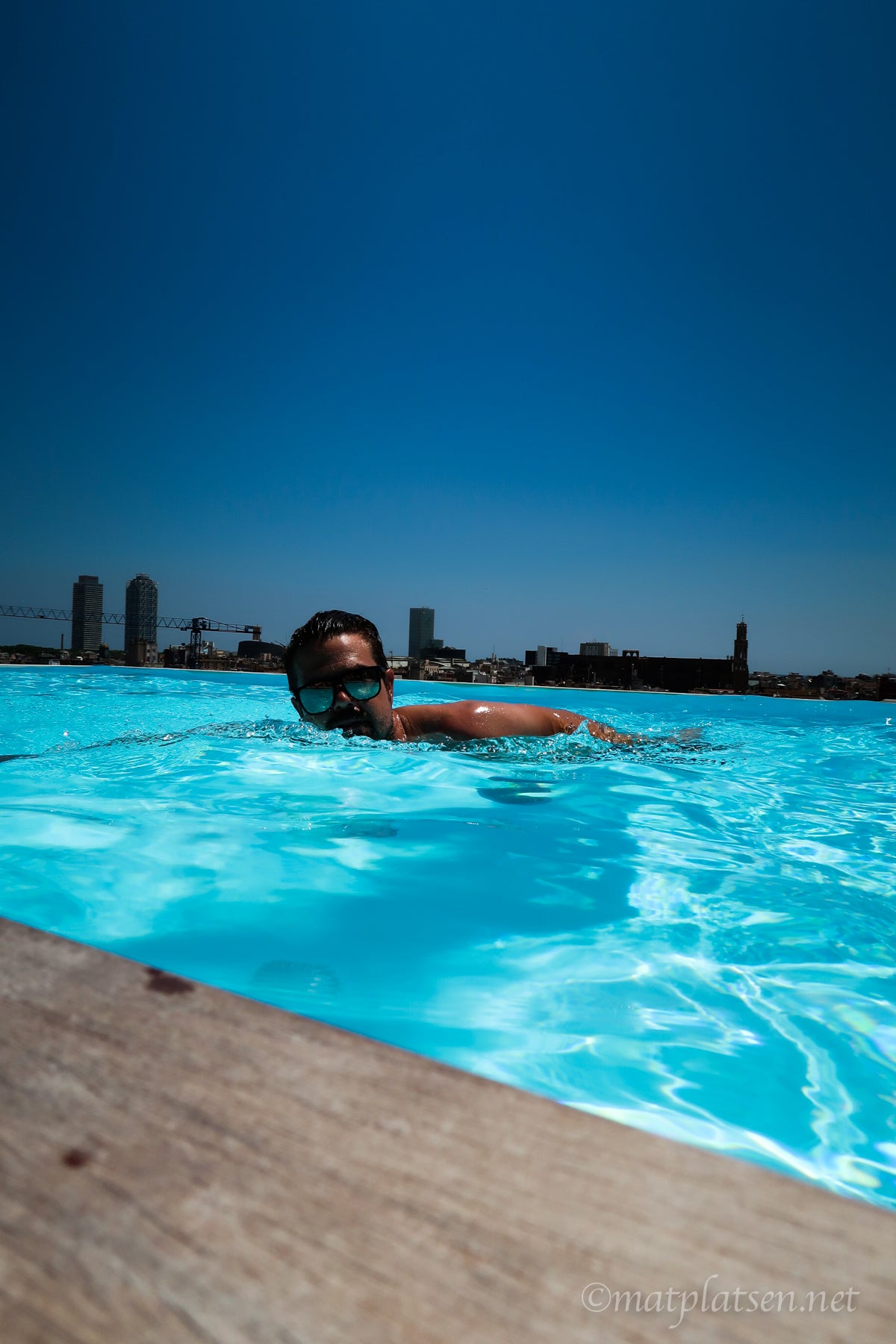 Men appropå semester så skrev jag ju aldrig om hotellet i Barcelona. Denna gång bodde vi på Grand Hotel Central. Riktigt lyxigt och fint hotell med grym takterass med pool. Listad som en av Barcelonas bästa rooftops om inte den bästa. Vackra goda drinkar och utsikt över taken med infinitypoolen i olika färger kvällstid. Så vackert!