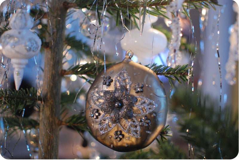 9. Gode gud vilken fin gran! Helt i min stil som själv har silver och vitt i min gran. Dock inte hälften så fina kulor, vart har du köpt dem? Speciell snöflingorna! Vill ha, måste ha 🙂