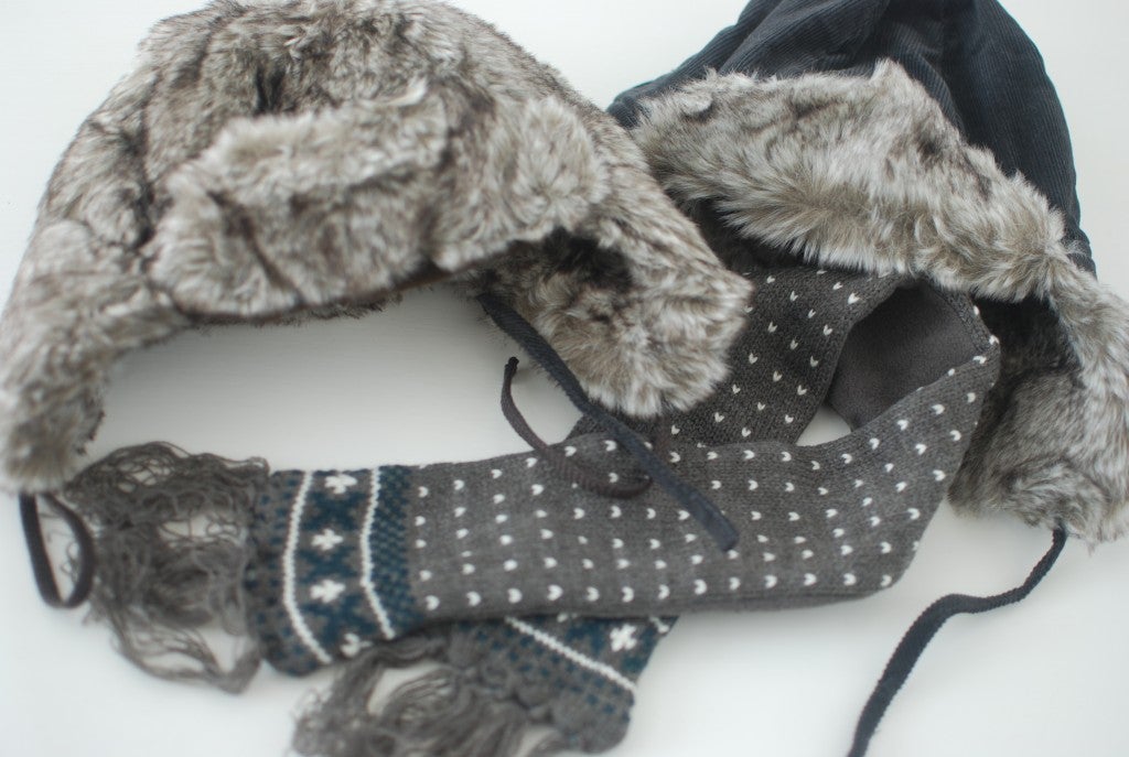 Nytt till Sebbelutten. Underbara lurviga mössor och en söt liten halsduk. H&M