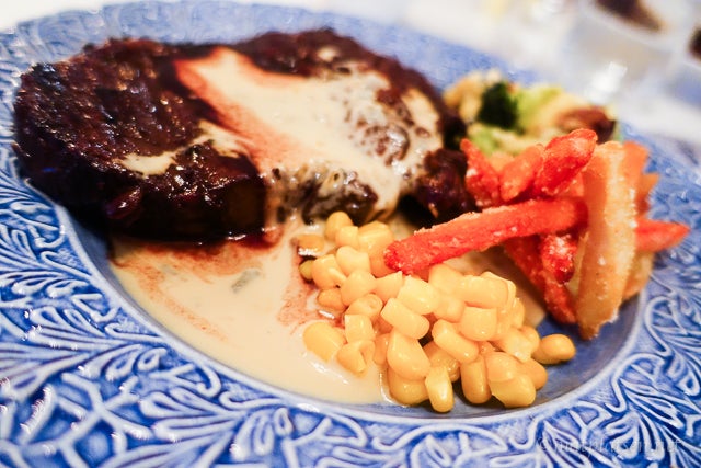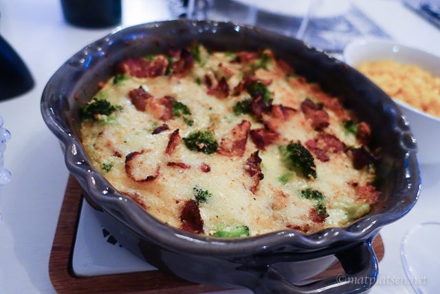 Första kvällen tänkte vi grilla men hade varken tid eller ork att åka och handla något att ha till (köttet köpte jag på morgonen hos Robertsons -bästa!) så det blev en utmaning i köket då kyl och frys gapade sorgligt tomma. Vi lyckades tillslut skramla i hop så det blev marinerad entrecote med kokt majs, ädelostsås, rödvinssås, friterade rotfrukter med parmesan och en broccoli/bacongratäng. Och det blev sååååå gott. Dessutom hade jag ett vin på lut som skulle provas – Passi Reali Vino Organico –  och det var en riktg fullträff, vi älskade det allihopa! Perfekt till de starka grillade smakerna. (beställes HÄR)