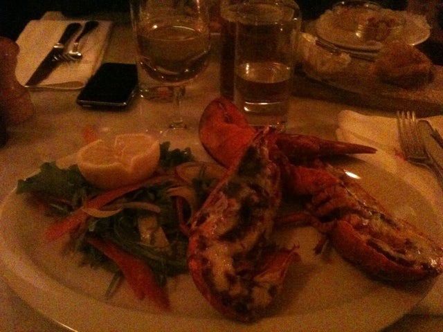 Avnjuter just nu en fantastiskt god gratinerad hummer. Galet god. Och lika gott vin i glaset 🙂